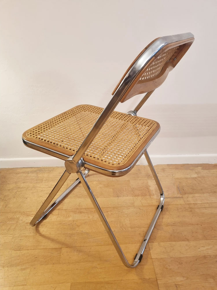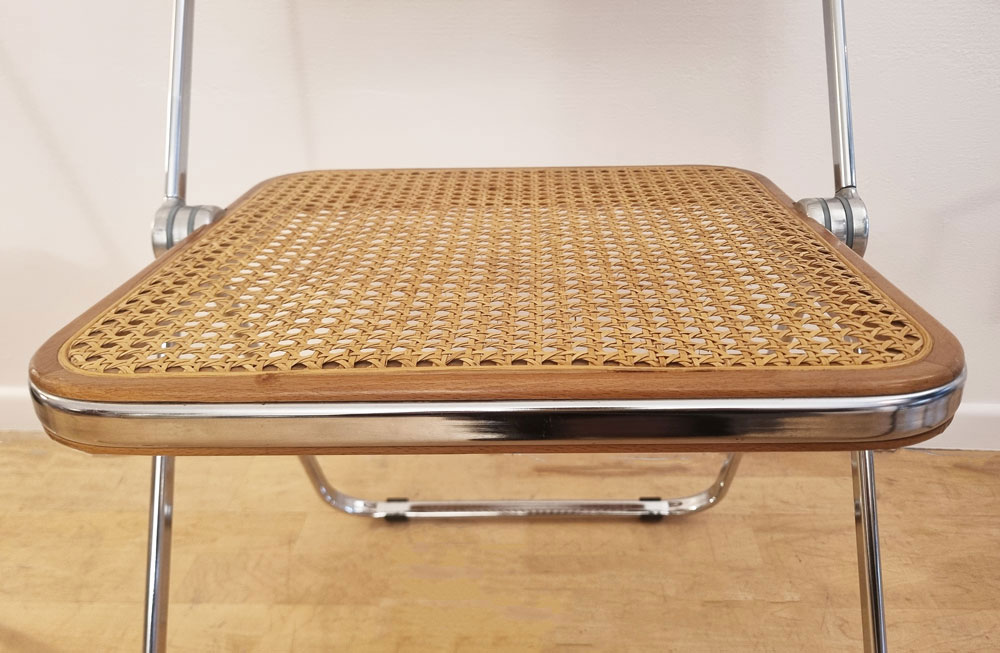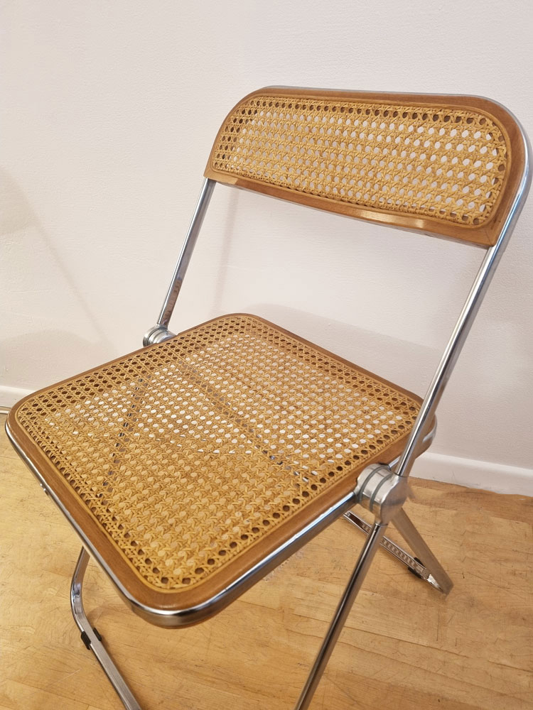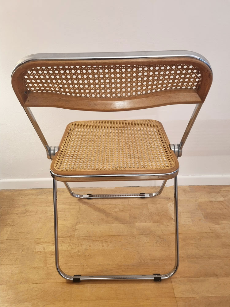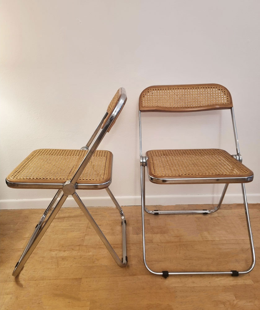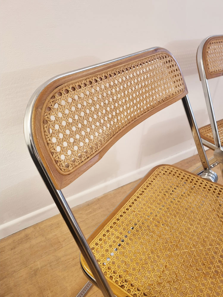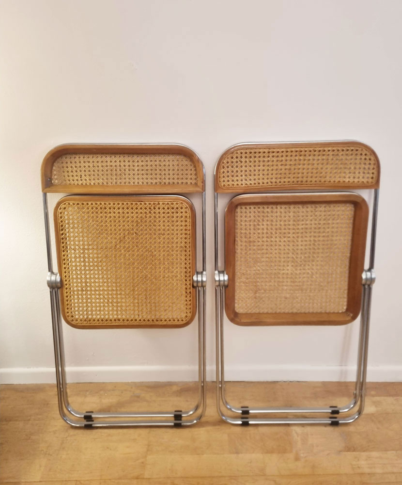 Chaises Plia Cane en acier chromé, hêtre et cannage viennois