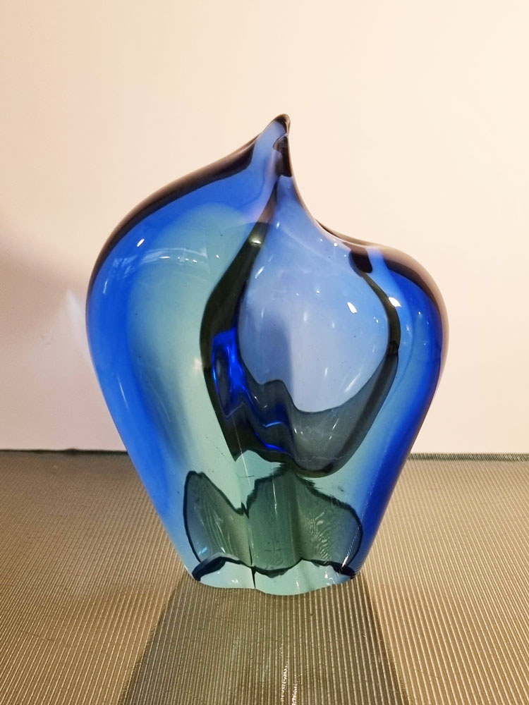 Vase en verre soufflé bleu et vert, de forme organique